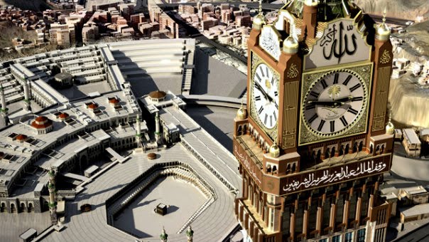 The Mecca Clock Royal Tower, a 577-metre tower overlooking the holy city. The Mecca Clock Royal Tower is also going to house an 858-room hotel. The complex, which will overlook the Grand Mosque that Muslims face for daily prayers. The Makkah Clock tower will be the biggest clock tower in the world as well as being the second tallest building. This article also has some great picture and videos of the whole development and the view of the Haram from the top of the biggest clock tower in the world. The tower is made up of 662 metres of concrete structure and a 155-metre crescent-topped metal spire.